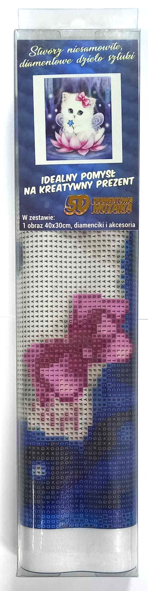 Creatieve set voor het maken van een mozaïekafbeelding met de diamond painting-methode, goed voor urenlang ontspanning en creatief plezier voor zowel kinderen als volwassenen. Met behulp van een applicatiepen plak je glinsterende steentjes op het voorbedrukte canvas en maak je eenvoudig een indrukwekkend motief van een kattenfee. In de verpakking zit alles wat je nodig hebt; de voltooide afbeelding kan ingelijst worden (lijst niet inbegrepen).