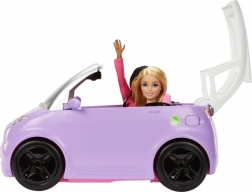 Neem je poppen mee op een spannende rit in een moderne cabriolet met een open dak. De auto heeft een stijlvolle paarse carrosserie met realistische details, inclusief veiligheidsgordels en een achteruitkijkspiegel.