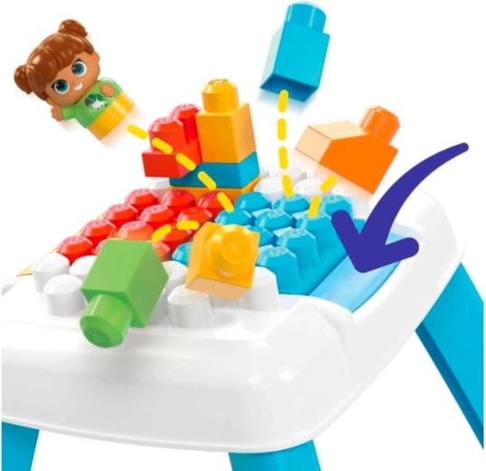 Deze tafel met omgooifunctie maakt het mogelijk om te bouwen en met één druk de blokken te verspreiden, wat de creativiteit en het speelplezier stimuleert.