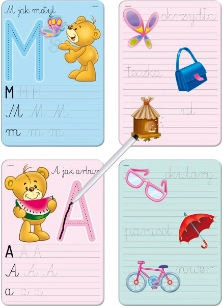 Een leuke educatieve set met beertje Krzyś helpt kinderen het schrijven van letters te oefenen. Dankzij de droog uitwisbare stift kunnen kinderen zorgeloos schrijven – fouten veeg je eenvoudig weg met een doekje en je begint opnieuw. Ideaal voor de eerste stappen in schrijven, het ontwikkelen van de fijne motoriek en het opbouwen van zelfvertrouwen tijdens het leren. Droog uitwisbaar oppervlak, herbruikbaar en speels leren waar kinderen dol op zullen zijn.