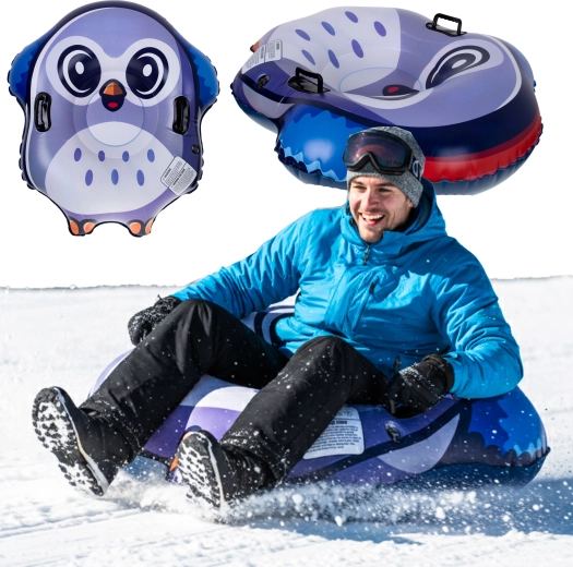 De opblaasbare sneeuwglijder met pinguïndesign biedt snelle en leuke afdalingen op besneeuwde hellingen. Gemaakt van hoogwaardig PVC met een gladde bodem voor een uitstekende glij, zodat je zelfs op een flauwe helling gemakkelijk op gang komt. De ergonomische vorm en twee robuuste handgrepen geven zekerheid en controle tijdens het glijden.