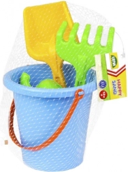In de verpakking zit alles wat kleine bouwers nodig hebben: een ruime emmer met een diameter van 16 cm, een schep, een hark en drie vormpjes. Het lichte en sterke kunststof maakt hanteren en reinigen eenvoudig, waardoor de set perfect is voor de zandbak, het strand en de tuin.