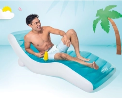 Het INTEX luchtbed is ontworpen voor maximaal comfort tijdens het relaxen op het water en op het land. De ergonomische vormgeving biedt zachte ondersteuning voor rug en benen, terwijl het brede oppervlak bijdraagt aan zekere stabiliteit zonder omkantelen. Dankzij de twee afzonderlijke kamers is het luchtbed eenvoudig en veilig te gebruiken.