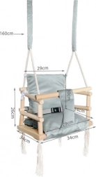 Dankzij het minimalistische design en de hoogwaardige materialen is het een mooie aanvulling op een modern interieur. Montage is eenvoudig, touwen met een diameter van 10 mm zorgen voor een betrouwbare ophanging. De schommel is bedoeld voor kinderen die zelfstandig kunnen zitten, met een draagvermogen tot 25 kg.