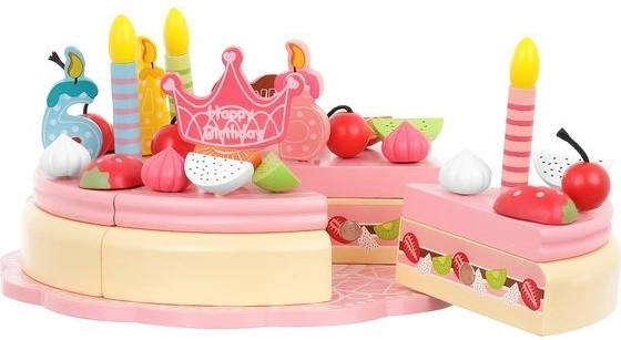 Houten verjaardagstaart met 48 delen is ideaal speelgoed voor kinderen die graag culinaire avonturen beleven. Kinderen kunnen de taart versieren met de bijgevoegde decoratieve elementen zoals fruit, suikerstukjes en kaarsjes, wat hun creativiteit en motorische vaardigheden bevordert.