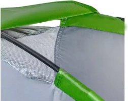 De tent is uitgerust met een praktische luifel die je spullen tegen regen beschermt. De muggengaas zorgt voor bescherming tegen insecten en vrije luchtstroom. De juiste ventilatie wordt ook ondersteund door een topventilatie met muggengaas, die beschermd kan worden tegen regen.