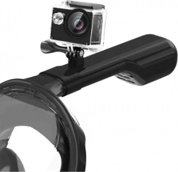 Het bovenste Dry-Top-ventiel beperkt automatisch het binnendringen van water in de snorkel bij golven of onderdompeling, en dankzij de brede, eenvoudig verstelbare banden blijft het masker stevig op zijn plaats. De geïntegreerde houder voor een actioncamera maakt het mogelijk indrukwekkende beelden van je avonturen te maken. Het masker is vervaardigd uit duurzame materialen (PC, ABS, siliconen, nylon, rubber) en in de verpakking vind je ook een draagzak en siliconen oordopjes.