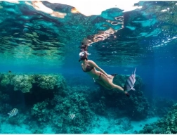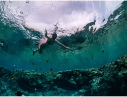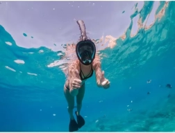 Het volgelaatsnorkelmasker combineert comfort met uitstekend zicht. Het ontwerp met een grote, gebogen vizier biedt een panoramisch 180° gezichtsveld, zodat je geen enkel detail mist. Het innovatieve luchtstroomsysteem laat je volledig natuurlijk ademen via neus en mond, terwijl de Anti-Fog-technologie beslaan voorkomt, zelfs bij langdurig gebruik.