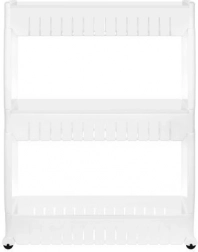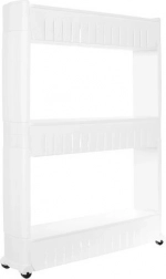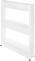 Smalle mobiele plank gemaakt van duurzaam plastic biedt extra opslagruimte voor uw spullen.