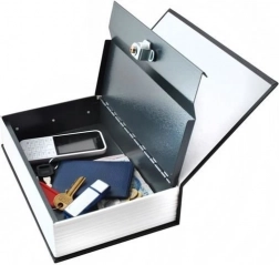 Berg je waardevolle spullen slim en onopvallend op. Deze boekkluis met realistische woordenboek-uitstraling gaat op de plank volledig op tussen andere titels. De buitenkant oogt als een echt boek, terwijl binnenin een stevige stalen opbergdoos schuilgaat die wordt beveiligd door een sleutelslot.