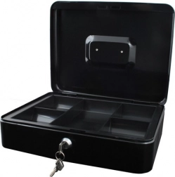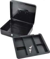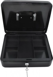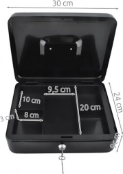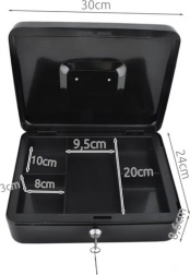 Deze grote metalen geldkist in een elegante zwarte kleur combineert veiligheid, overzicht en duurzaamheid. De gelakte stalen behuizing en stevige interne scharnieren beschermen de inhoud tegen schade en ongeautoriseerde toegang, terwijl het sleutelslot (2 sleutels meegeleverd) zorgt voor betrouwbare vergrendeling.
