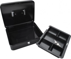 De interne PP-kunststof inzet biedt een overzichtelijke indeling voor munten en bankbiljetten. De verzonken, verchroomde handgreep vergemakkelijkt het dragen en maakt het mogelijk meerdere kisten op elkaar te stapelen – een praktische oplossing voor kassa’s, markten en kantoren.
