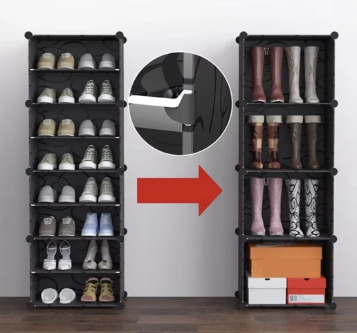 De modulaire schoenenkast is een praktische oplossing voor kleine én grote huishoudens. Dankzij de bouwpakketconstructie pas je hem gemakkelijk aan de ruimte en het type schoenen aan, en indien nodig breid je uit met extra modules. Transparante deurtjes beschermen tegen stof en geven tegelijk in één oogopslag zicht op de inhoud, zodat je altijd snel het juiste paar vindt.