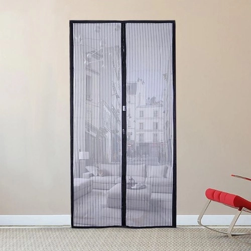 Geniet van frisse lucht zonder muggen en vliegen. Deze hordeur van duurzame gaasstof met magnetische sluiting en montage met klittenband zorgt voor betrouwbare bescherming tegen insecten, vrije luchtcirculatie en handsfree doorgang. Kan worden aangepast aan de afmeting van deuren 80/90/100 × 210/220 cm.