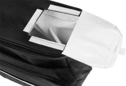 De tas is ontworpen om ongunstige omstandigheden zoals regen of sneeuw te weerstaan en houdt je eten droog en veilig.