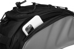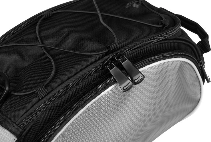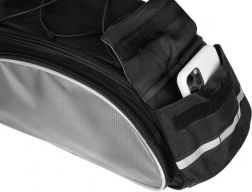 Reflecterende elementen op de tas verbeteren de zichtbaarheid bij weinig licht, wat bijdraagt aan meer veiligheid op de weg.
