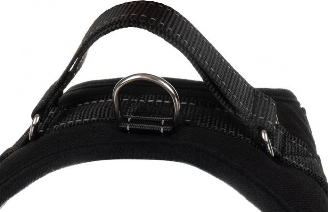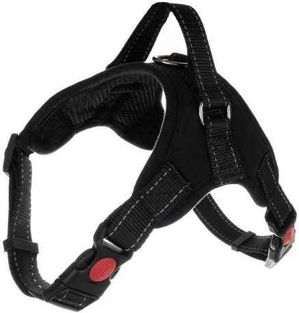 Comfortabel en veilig drukvrij hondenharnas in maat M, gemaakt van duurzaam polyester met katoenen voering. Biedt egale drukverdeling, eenvoudige verstelling bij nek en borst, reflecterende elementen voor zichtbaarheid en een stevige handgreep met ring voor de lijn. Ideaal voor dagelijkse wandelingen, training en reizen, voor honden tot 30 kg.