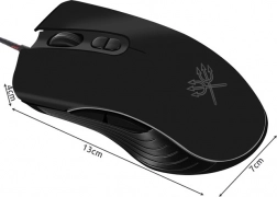 SPECIFICATIES- kleur: zwart; software: Plug & Play; muisverlichting: ja; sensor: optisch; glijders: teflon; variabele verlichting: ja; muisprofilering: rechtshandig; oppervlakteafwerking: mat - ABS; programmeerbare toetsen: ja;aantal toetsen 7; resolutie:1200-2400-4800-7200 DPI; levensduur: 5 miljoen kliks; poort: USB 2.0; kabellengte: 135 cm; gevlochten kabel: ja; systeemspanning DC 5V / 100 mA; systeemvereisten XP / VISTA / 7/8/10 / Vista / Mac OS of nieuwer; afmetingen: 13/7/4 cm; gewicht: 0,124 kg; gewicht in verpakking: 0,162 kg.