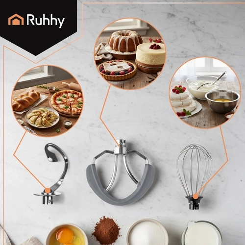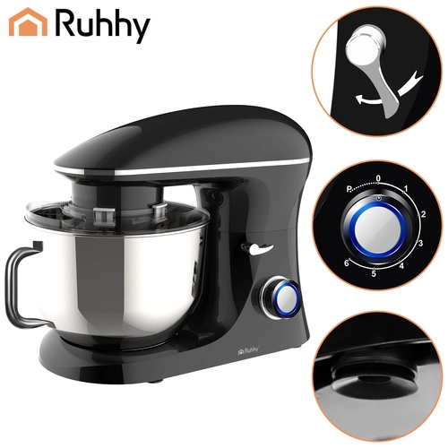 Krachtige RUHHY keukenmachine met planetaire mengfunctie en een ruime roestvrijstalen kom van 6,2 l die kloppen, kneden en mengen van zowel zware deegsoorten als luchtige crèmes aankan. Dankzij de 1500 W motor, 6 snelheden en pulsefunctie heb je soepele controle over de bereiding. De stabiele constructie met metalen tandwieloverbrenging, LED-verlichte knop en rijk assortiment aan accessoires maakt dagelijks bakken en koken gemakkelijker.