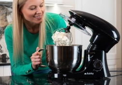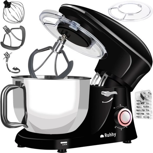 De Ruhhy planetarische keukenmixer met robuuste antislip zuigvoetjes zorgt voor stabiliteit tijdens gebruik. Dankzij het metalen planetaire systeem en de drie verschillende opzetstukken - haak, garde en mixer - kunt u alle ingrediënten perfect verwerken en optimale resultaten bereiken.