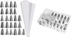 Het apparaat is gemaakt van hoogwaardige materialen zoals roestvrij staal en ABS, wat een lange levensduur garandeert. Bij de verpakking hoort ook een decoratieve suikertaart spuitzak met 24 mondstukken, die de creatieve mogelijkheden in de keuken vergroot.