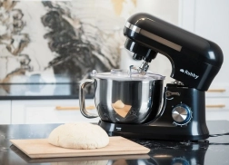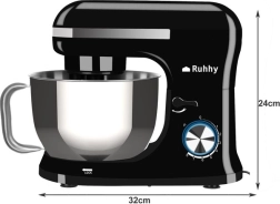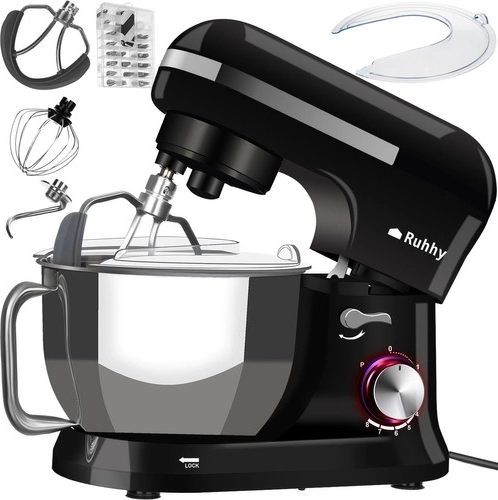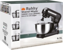 De Ruhhy planetaire mixer met een vermogen van 1700 W is voorzien van een robuuste roestvrijstalen kom van 4,5 liter, die gebruiksgemak biedt dankzij het ergonomische handvat en de spatbescherming. Antislip zuignappen zorgen voor stabiliteit op het werkblad. Tot de voordelen behoren ook 8-snelheidsregeling inclusief pulsmodus, ideaal voor verschillende culinaire technieken zoals kloppen, mixen en kneden.