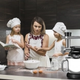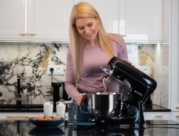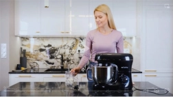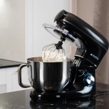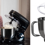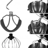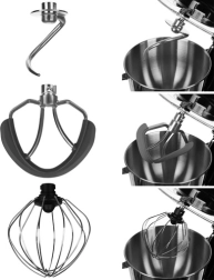 In de doos vind je drie opzetstukken: een deeghaak, een ballongarde en een menghaak met siliconen schrapers voor een perfecte vermenging van ingrediënten. De stabiele basis met antislip zuignappen, veiligheidsvergrendeling en LED-verlichte draaischakelaar maken van deze robot een betrouwbare partner voor bakken en dagelijks koken.