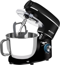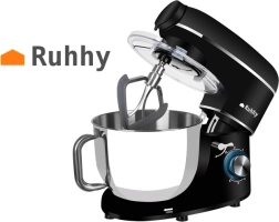De universele 3-in-1 keukenrobot van RUHHY combineert planetaire menging, een glazen blender van 1,5 l en een vleesmolen in één krachtig apparaat met een vermogen van 2200 W. Dankzij de roestvrijstalen kom van 6,2 l met handgreep, 6 snelheden + PULSE en drie professionele opzetstukken klop, mix en kneed je deeg moeiteloos, en maal je bovendien vlees of maak je smoothies. Inclusief spatbescherming en uitgebreide accessoires, waaronder een spuitzak voor banketbakkers.