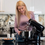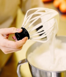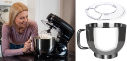 Perfecte mengresultaten door de planetaire baan van de opzetstukken. De roestvrijstalen kom met praktische handgreep en spatdeksel houdt alles netjes, zelfs bij hoge snelheden.