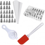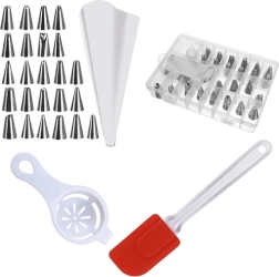 - spuitzak voor banketbakkers + 24 spuitmondjes in organizer, eischeider, spatel