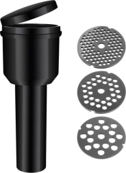 Maak thuis gehakt precies naar wens. Drie schijven met verschillende grofheden en accessoires voor het vullen van worsten vergroten je kookmogelijkheden.