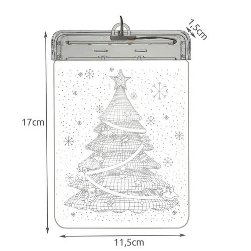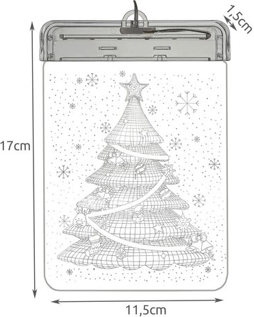 Stijlvolle dubbelzijdige vitraž-LED-decoratie in de vorm van een kerstboom die een gezellige sfeer creëert met warm wit licht. Dankzij de batterijvoeding plaats je hem eenvoudig op een raam of muur zonder kabels of verlengsnoeren. De lichte constructie met zuignap maakt snelle montage mogelijk en het 3D-effect ziet er zowel van buiten als van binnen geweldig uit.