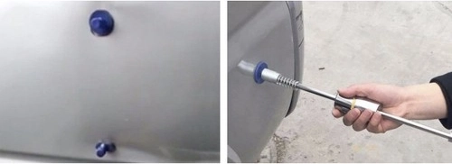 Lijmtabs en de trekslaghamer trekken de deuk zacht en effectief uit. De originele lak blijft onaangetast en het resultaat is direct zichtbaar.