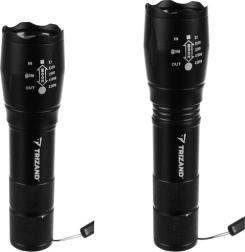 De robuuste zaklamp met 5 W vermogen gebruikt een CREE-led en een precieze convexe lens voor een bereik tot 200–300 m (afhankelijk van de omstandigheden). Dankzij de traploos instelbare zoom schakel je eenvoudig tussen brede spreiding en een smalle, geconcentreerde bundel.