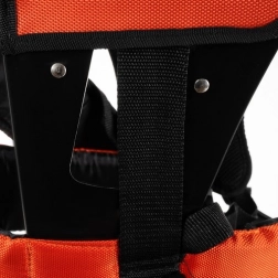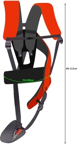 De draagriemen zijn uitgerust met een metalen bevestiging die eenvoudige installatie van de benzinezaag mogelijk maakt en zorgt voor een stevige houvast.