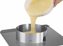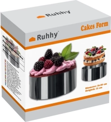 Hoogwaardig roestvrij staal is hygiënisch, neemt geen geuren op en is geschikt voor elektrische, gas- en heteluchtovens. In de verpakking zitten clips om de diameter te fixeren, waardoor de ring zijn vorm behoudt tijdens het ingieten van het beslag en het bakken.