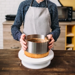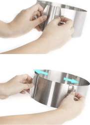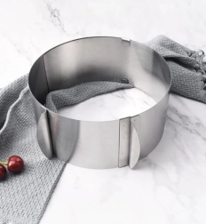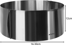 De universele ronde verstelbare taartring is ideaal voor het bakken van biscuitbodems, het opbouwen en koelen van taarten en desserts. Hij heeft geen bodem; giet het beslag op een met bakpapier beklede bakplaat en stel eenvoudig de gewenste diameter in. De interne maataanduiding 16–30 cm per 2 cm bespaart tijd en zorgt voor precisie.