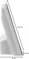 Naast meten biedt het apparaat een praktische klok, een wekker met snooze van 8 minuten en een kalender. Eenvoudige bediening via een paneel met 5 knoppen en een geluidsfeedback bij het instellen. Dankzij de compacte afmetingen 9,5 × 9,5 × 4 cm past het in de woonkamer, slaapkamer, kinderkamer en het kantoor – één AA-batterij volstaat.