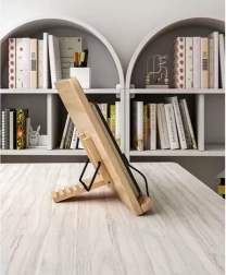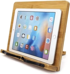 Gemaakt van natuurlijk bamboe met een metalen constructie voor een lange levensduur en stabiliteit. Dankzij de 6 verstelbare posities kies je eenvoudig de optimale hoek voor het lezen van recepten, studeren, schetsen of het bekijken van video’s.