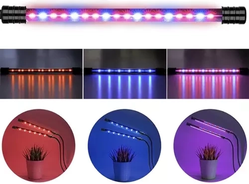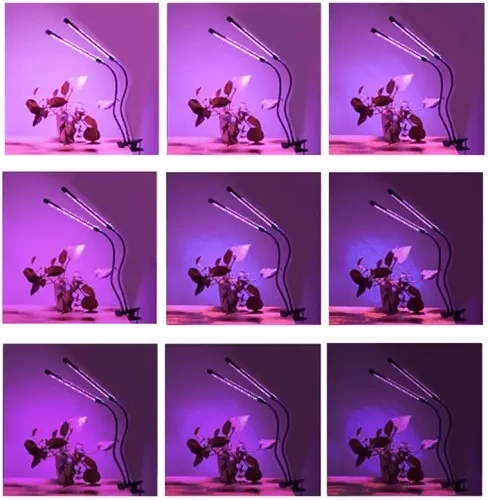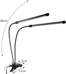 Deze praktische tweekoppige groeilamp met 40 LED-diodes combineert rood (630 nm) en blauw (470 nm) spectrum, wat fotosynthese, wortelvorming, groei en bloei ondersteunt. Dankzij de flexibele zwanenhalzen richt je het licht precies waar de planten het nodig hebben, en met de klem bevestig je haar aan een plank of tafel.
