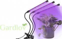 De GARDLOV LED kweeklamp combineert rood (630 nm) en blauw (470 nm) lichtspectrum, wat de fotosynthese ondersteunt en gunstig is voor alle groeifasen – van kieming en beworteling via vegetatieve groei tot bloei. Drie afzonderlijke lichtpanelen op flexibele armen zorgen voor gelijkmatige dekking en eenvoudige lichtsturing.