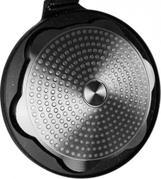 De pan is gemaakt van aluminium met een dikke bodem voor langere warmtebehoud en heeft een anti-aanbak PTFE/keramische afwerking voor gemakkelijk omdraaien en reinigen. De ergonomische handgreep (afneembaar) vergemakkelijkt hanteren en opbergen. Geschikt voor gas-, elektrische, halogeen- en inductie kookplaten.