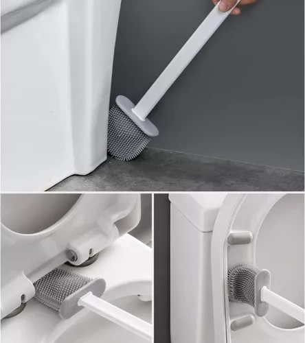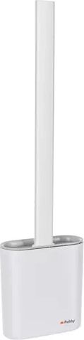 De compacte siliconen WC-borstel RUHHY met houder biedt hygiënische en zachte reiniging zonder krassen, een flexibele kop voor elke hoek en twee opbergmogelijkheden – vrijstaand of met een zelfklevende montage zonder boren. Het moderne wit‑grijze design past perfect in elke badkamer.