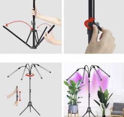 Deze full-spectrum kweeklamp combineert golflengten van 660 nm (rood) en 460 nm (blauw) die door planten effectief worden geabsorbeerd voor intensieve fotosynthese. Vier afzonderlijke lichtpanelen met draaibare en buigzame armen van 360° richt je precies daar waar je planten licht nodig hebben.