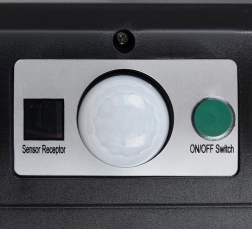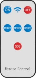 Bedien de lamp comfortabel met de afstandsbediening: AAN/UIT, drie modi met activering bij detectie van beweging (30%, 50% of 100% helderheid gedurende 30 s) en een SOS-modus voor continu licht zonder sensor.