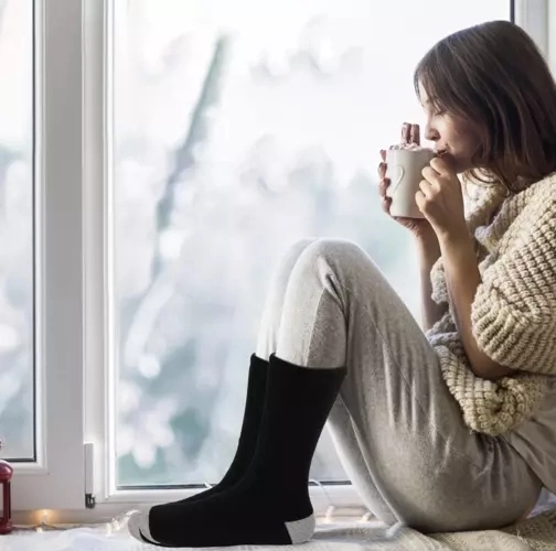 De sokken zijn verkrijgbaar in maat 36 tot 44 en bieden warmte aan zowel de voeten als de kuiten.