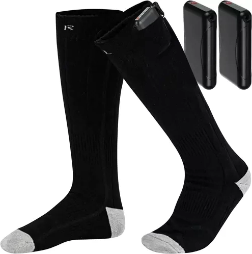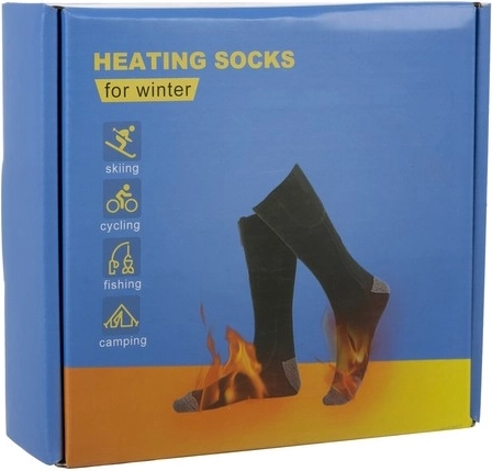 De verpakking bevat alles wat nodig is voor gebruik - een paar sokken, twee accu's en een USB-kabel met splitter. Geen koude voeten meer!