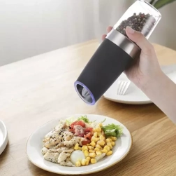 Geniet van het intense aroma en de smaak van je favoriete kruiden met de elektrische zwaartekrachtmolen van het merk Ruhhy. Deze molen is praktisch, eenvoudig te gebruiken en het moderne ontwerp in het zwart past in elke keuken. De set bevat twee molens die geactiveerd worden door eenvoudig 180 graden te draaien.