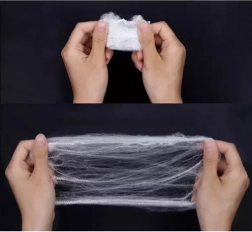 De vezels laten zich gemakkelijk uitrekken en behouden hun vorm, zodat u een realistisch spinnenweb over grote oppervlakken kunt creëren. Ideaal voor meubels, ramen, balustrades of etalages.