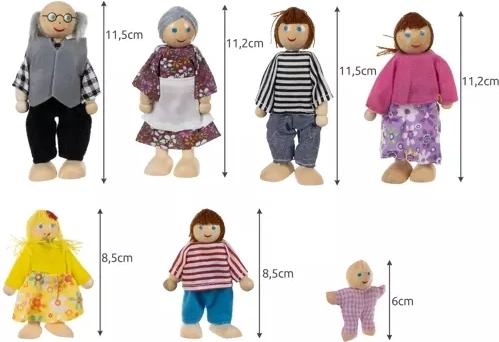 PASSEN BIJ HET POPPENHUIS - de poppetjes passen perfect bij de afmetingen van houten meubels. Ook een groot 3-generatiegezin past uitstekend in het poppenhuis.